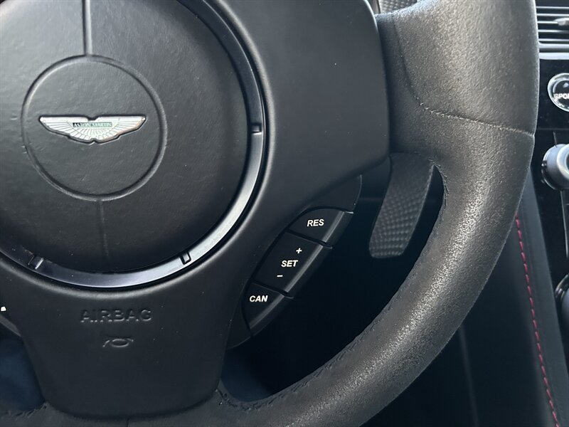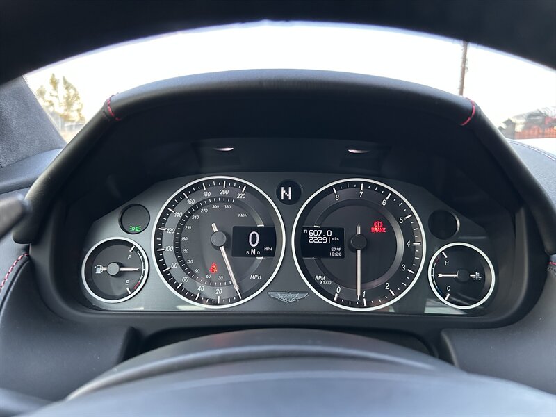 Step inside the meticulously crafted cabin, and you'll be enveloped in the luxurious Dark Knight interior. Premium leather upholstery and fine materials adorn every surface, showcasing the attention to detail that Aston Martin is famous for. The cockpit features a driver-focused layout with ergonomic controls, ensuring both comfort and functionality. Standard features include a premium audio system, navigation, and Bluetooth connectivity, allowing you to enjoy your favorite tunes or stay connected while on the go. The sport seats provide excellent support for both spirited driving and leisurely cruises.