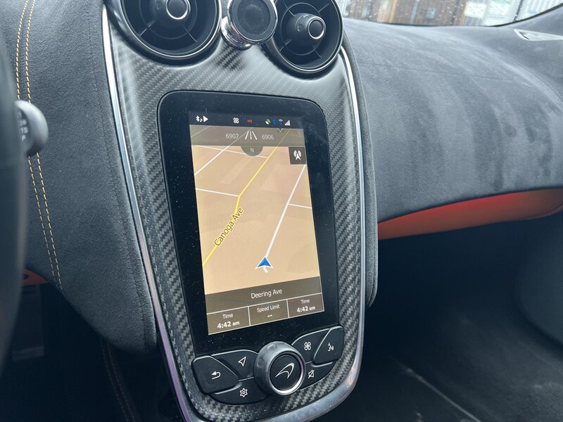 - Performance and dynamics: Adaptive damping and McLaren’s drive-mode system allow quick switching between settings tailored for everyday driving or more aggressive track use. The vehicle includes a high-performance carbon-ceramic braking system and comprehensive electronic controls (ABS, traction control, stability management and launch control) to maximize control and confidence at speed.