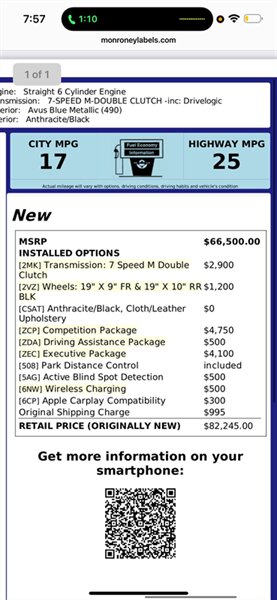 - Competition PackageIncludes 19 in. or 20 in. wheels with mixed performance tires, BMW Individual high gloss shadow line trim, increased horsepower, new suspension settings, and M sport styling.