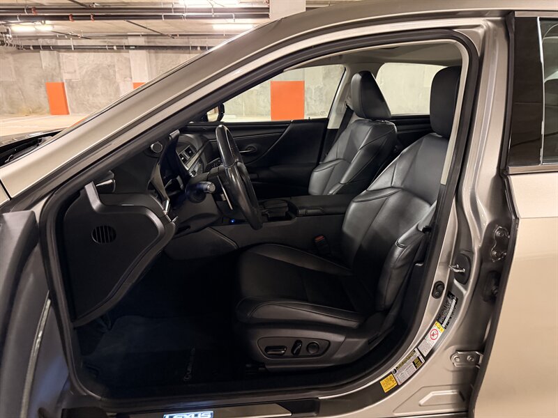 2019 Lexus ES 350 with the 3.5L V6 (302 hp, 267 lb-ft) mated to an 8-speed automatic, finished in Atomic Silver with a Black interior and Striated Black film trim. Factory equipment includes Lexus Safety System+ (pre-collision with pedestrian detection, lane-departure alert with steering assist, dynamic radar cruise control, automatic high beams), LED headlights and daytime running lights, keyless entry with push-button start, dual-zone automatic climate control, power-adjustable front seats with lumbar support, an 8-inch multimedia display with Bluetooth, USB and HD Radio, rearview camera, alloy wheels and front-wheel drive. Excellent overall condition, clean CARFAX, under 24,000 miles (averaging less than 3,000 miles per year) and rated at 22 MPG city / 33 MPG highway.