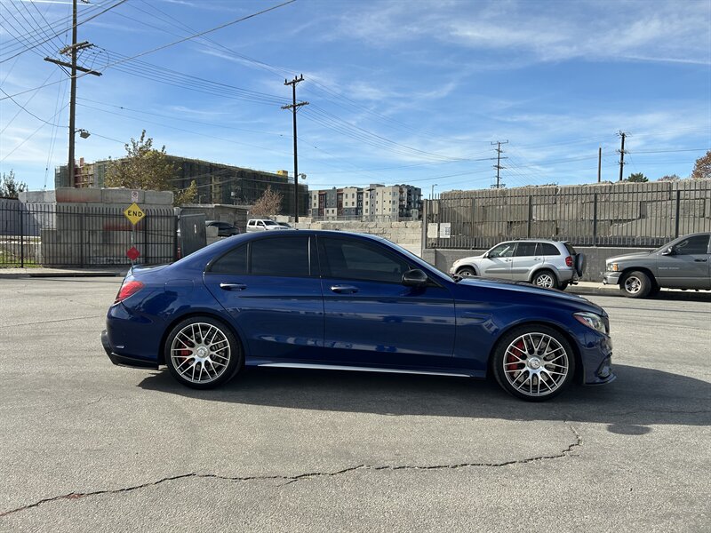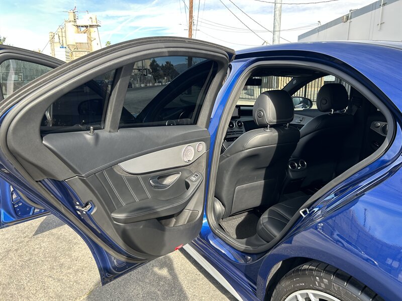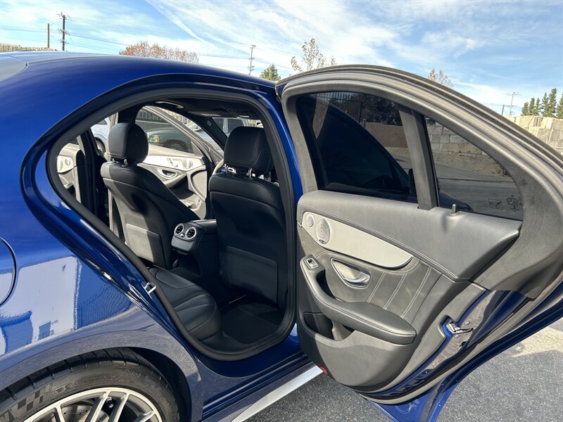 The exterior of this AMG C 63 S is presented in a captivating Brilliant Blue Metallic finish, a color that not only enhances its aggressive stance but also radiates sophistication. Complementing this striking exterior is a meticulously designed Black interior, featuring premium materials and advanced technology that define the essence of Mercedes-Benz luxury.