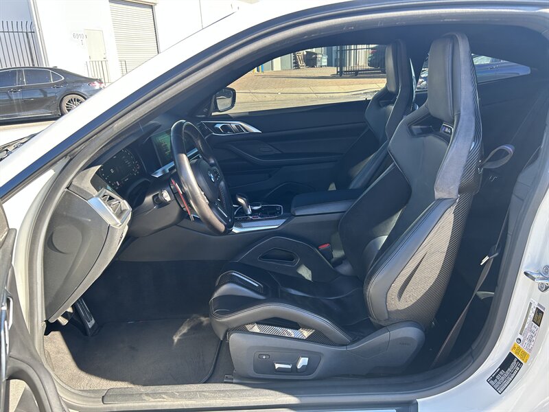Introducing the 2021 BMW M4 Competition, a masterpiece of engineering and performance that embodies the spirit of driving excellence. This remarkable coupe is powered by a robust 3.0L Twin Turbo Inline-6 engine, delivering an exhilarating 503 horsepower and 479 lb-ft of torque, ensuring an adrenaline-pumping driving experience. With its meticulous design and cutting-edge technology, the M4 Competition is tailored for those who demand both luxury and performance.