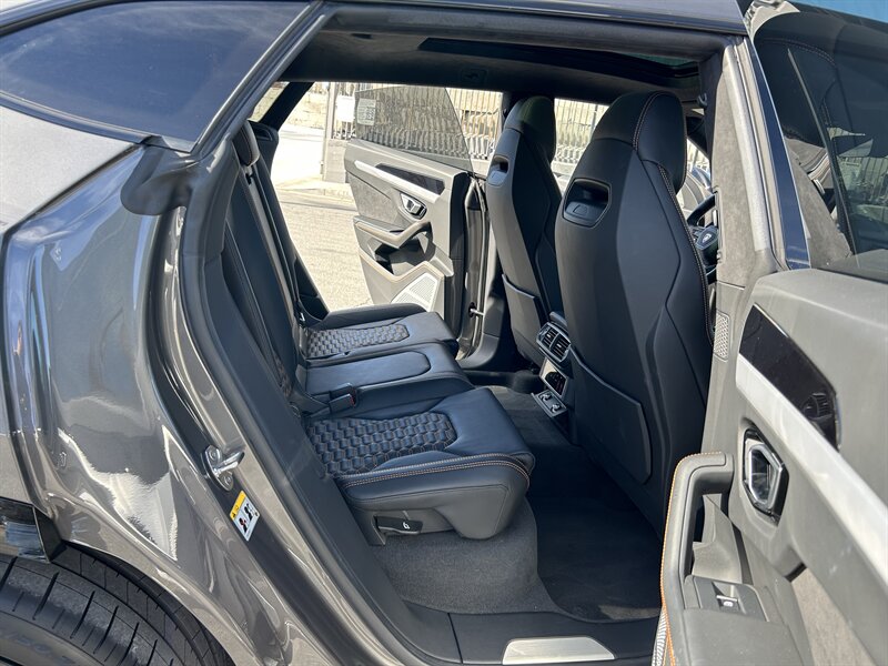 2021 Lamborghini Urus — Grigio Keres Metallic exterior with Nero Ade leather interior. Powered by a commanding 4.0L twin-turbo V8 producing 641 hp and 626 lb-ft of torque, this SUV delivers supercar performance with everyday usability. It averages excellent mileage with under 30,000 miles total (roughly less than 5,000 miles per year), and returns an EPA-rated 12 MPG city / 17 MPG highway. The vehicle is in excellent overall condition, has a clean CARFAX, and is a one-owner example.