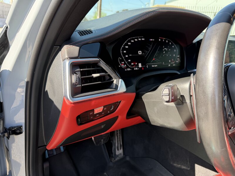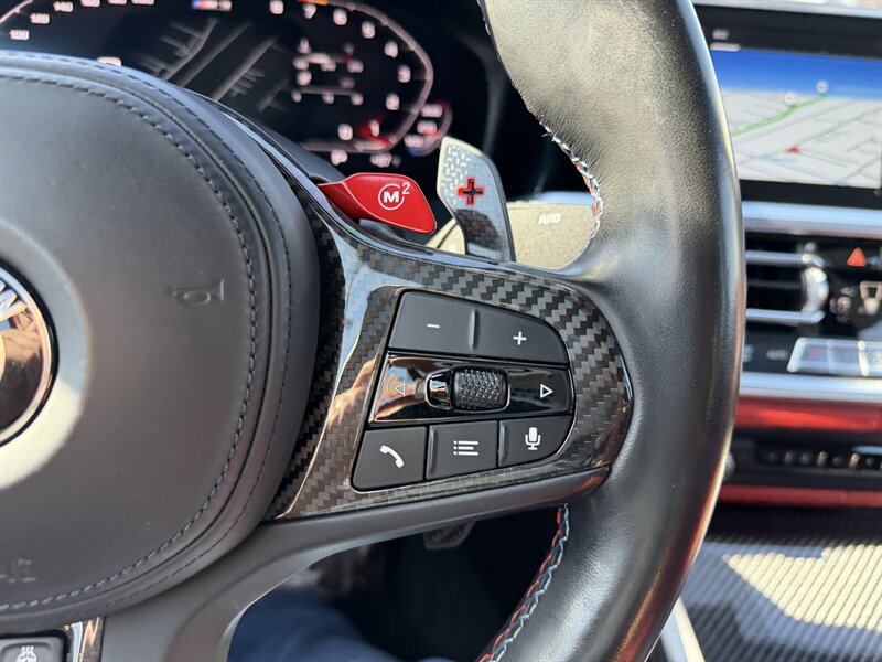 Factory-standard equipment focuses on performance and driver control: M-tuned adaptive suspension, M Servotronic steering, M-specific chassis tuning and stability systems, Active M hardware for optimal power distribution, quad M exhaust outlets, advanced BMW Live Cockpit with digital instrument cluster and central infotainment with navigation and smartphone integration, dual-zone climate control, comprehensive airbag and ABS/DSC safety systems, and front/rear parking sensors.
