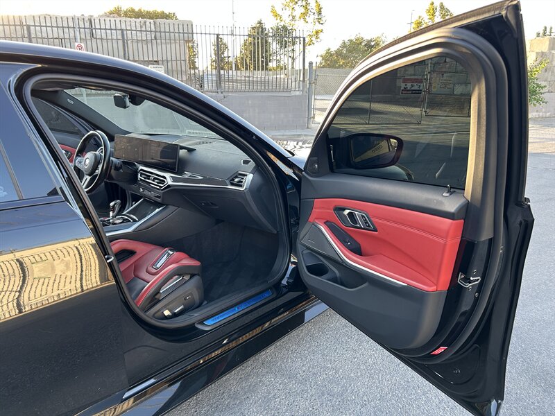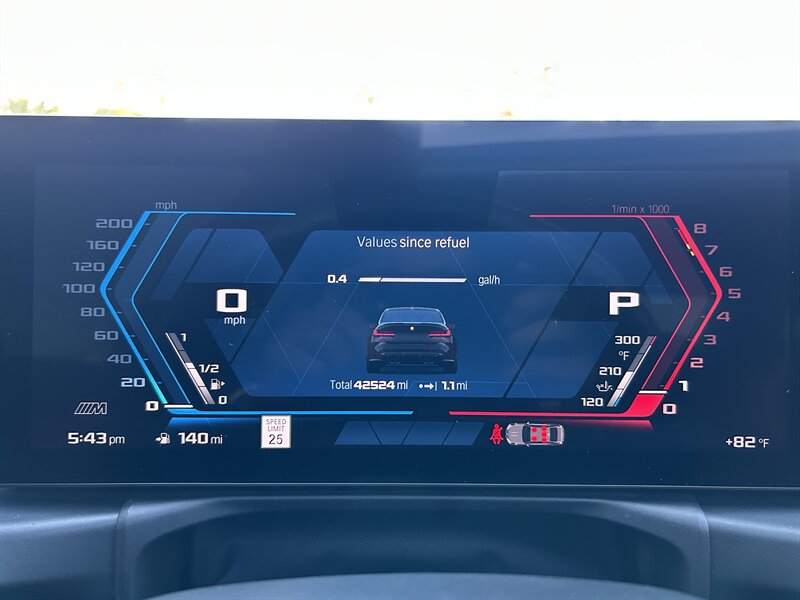 Draped in stunning Black Sapphire Metallic paint, the M3 Competition exudes a commanding presence on the road. The sleek lines and aggressive stance are complemented by 19/20 inch M Dual-Spoke Black Forged 826M wheels, which not only enhance the vehicle's aesthetics but also contribute to its performance capabilities. The Icon Adaptive LED Headlights with Laserlight technology provide exceptional visibility, ensuring safety and clarity in all driving conditions.