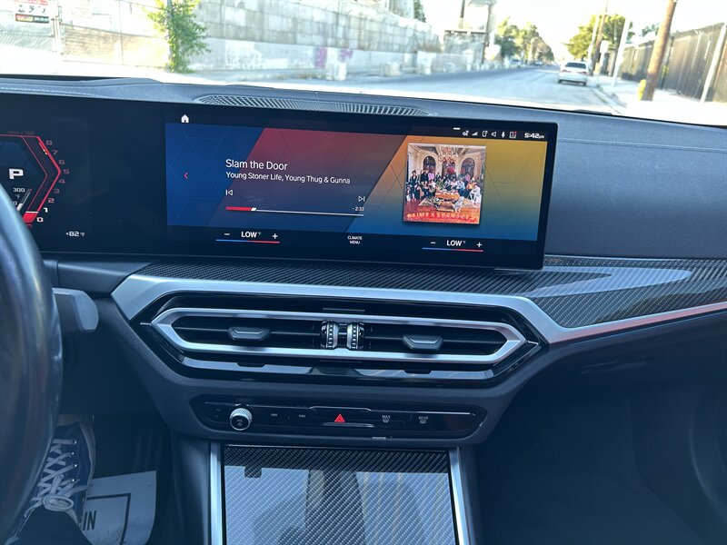 Step inside to find a meticulously crafted interior featuring Fiona Red and Black upholstery that exudes luxury and sportiness. The M Carbon Bucket Seats provide exceptional support, ensuring you stay comfortably positioned during spirited driving. The Carbon Fiber Interior Trim adds a touch of modern sophistication, enhancing the overall ambiance of the cabin.