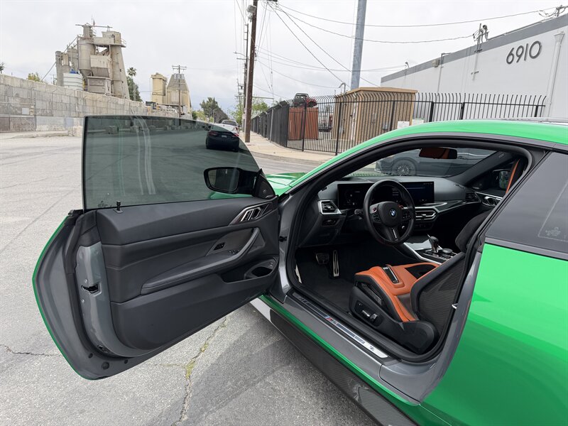 From the factory the M4 Competition is equipped with BMW’s high-performance driveline and chassis engineering: the turbocharged S58 3.0L I6 is mated to an M-tuned multi-ratio automatic transmission engineered for rapid, precise shifts and optimized power delivery. The chassis includes M-calibrated adaptive dampers and M-specific steering dynamics for razor-sharp response and composed handling. Active differential and performance chassis tuning deliver balanced traction and cornering control under both spirited and everyday driving conditions.
