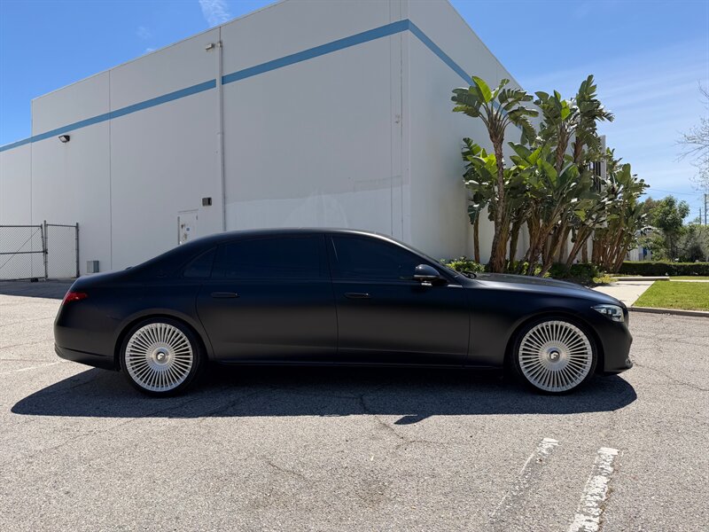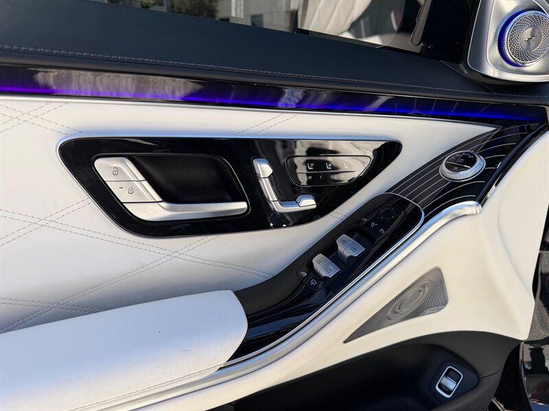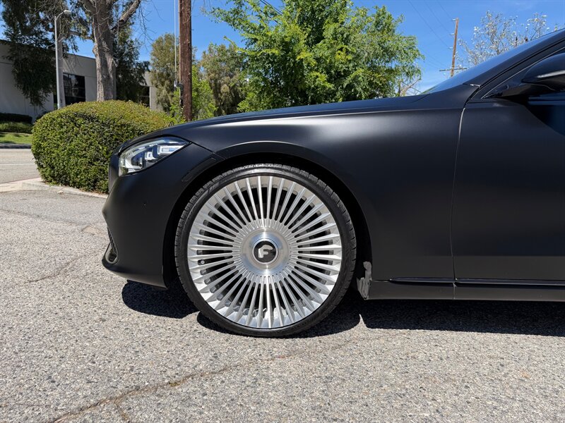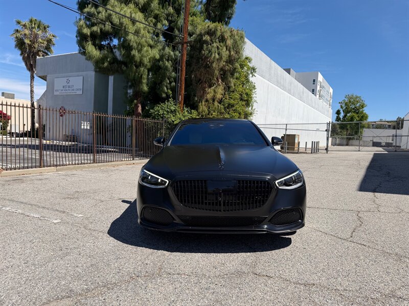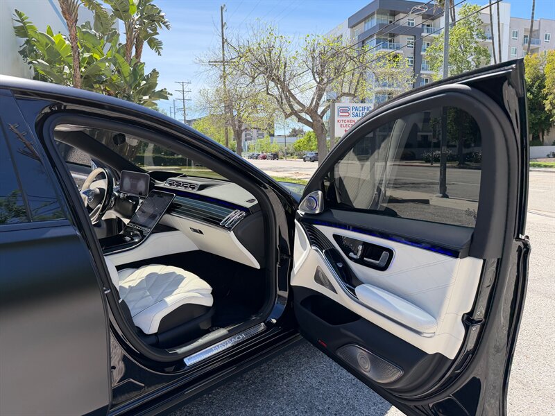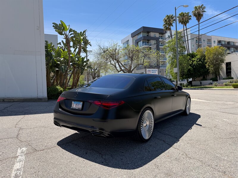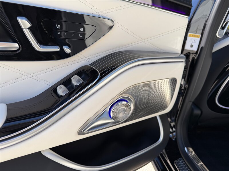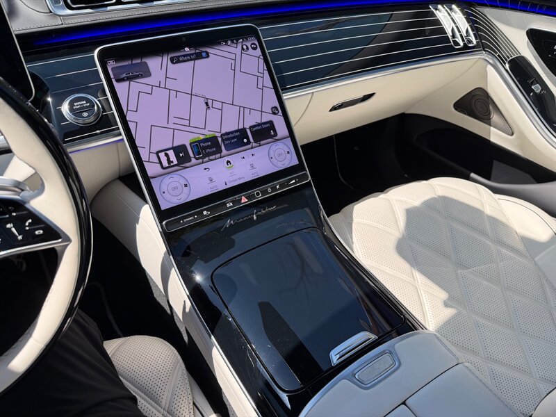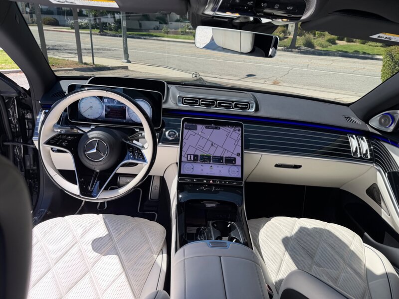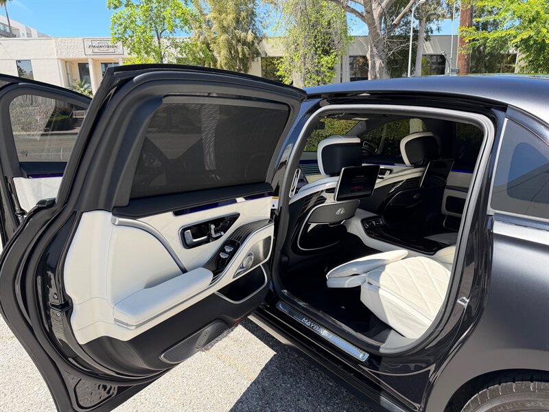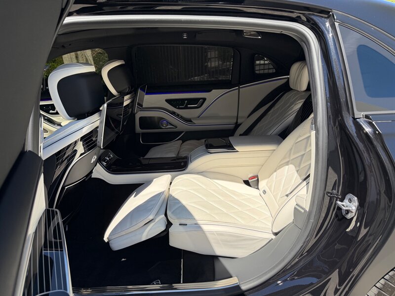 2024 Mercedes-Maybach S 580 4M 4MATIC — pristine, low-mile example finished in MANUFAKTUR Night Black Magno with Deep White/Black interior. Powered by a 4.0L Mild-Hybrid E-Twin Turbo V8 producing 496 hp and 516 lb-ft, this ultra-luxury sedan averages under 8,000 miles per year (below 24,000 miles total), returns an EPA-equivalent 18 MPG city / 26 MPG highway, and has a clean CARFAX. Included factory packages and options: Executive Rear Seat Package PLUS, MANUFAKTUR Exclusive Interior, MANUFAKTUR Platinum Emblem Package, Maybach Night Series Design Package, All-Season Front & Rear Floor Mats, MANUFAKTUR Diamond-Quilting Roof Liner in Nappa Leather, MANUFAKTUR Leather & Natural Grain Herringbone Wood Trim, Comfort Box, Refrigerator Console in Rear Cabin, Rear Electric Comfort Doors, MANUFAKTUR Night Black Magno Matte Paint, E-ACTIVE BODY CONTROL, and 21 in. Maybach Exclusive Champagne Flute Multi-Spoke Wheels. Vehicle condition: excellent.