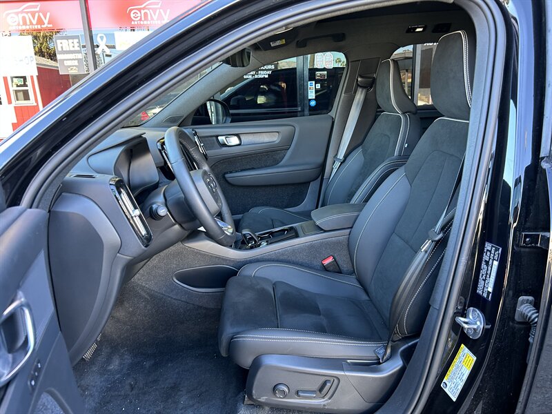 This XC40 Recharge is enhanced with the Climate Package, which includes heated front seats and a heated steering wheel for those colder months, as well as the Protection Package Premier, offering added peace of mind with features like rubber floor mats and cargo area protection.